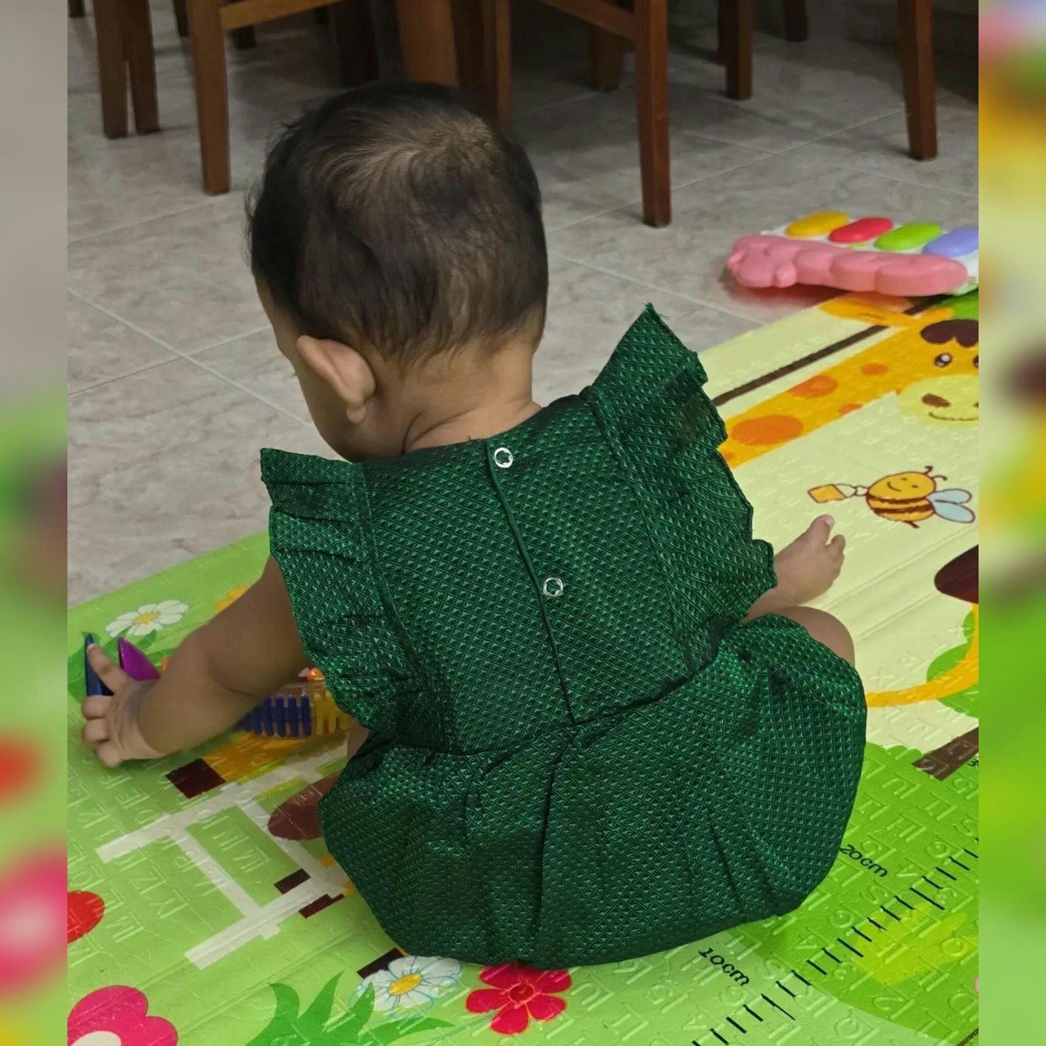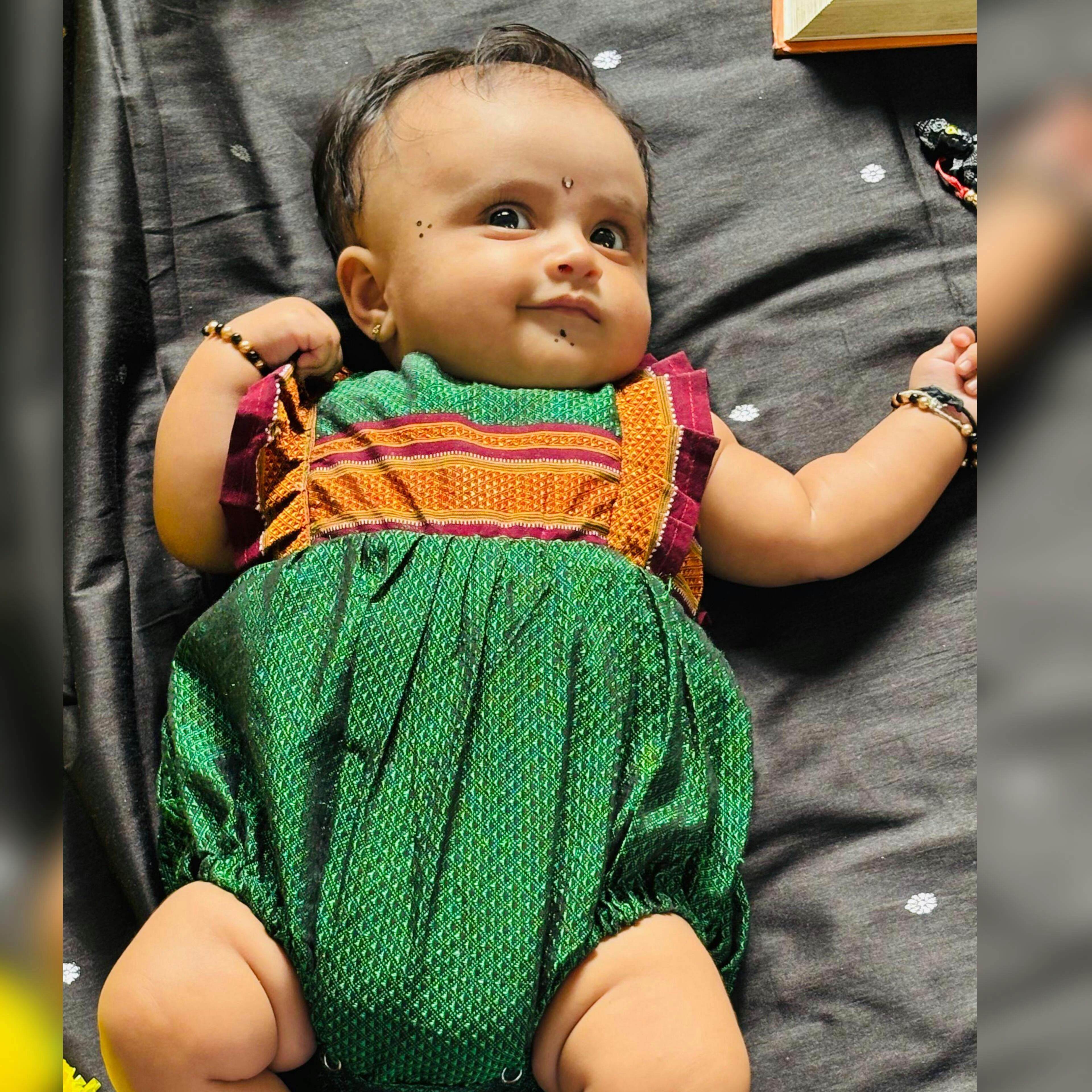 Green Ethnic Baby Romper for Girls – Festive Silk Blend with plain frills