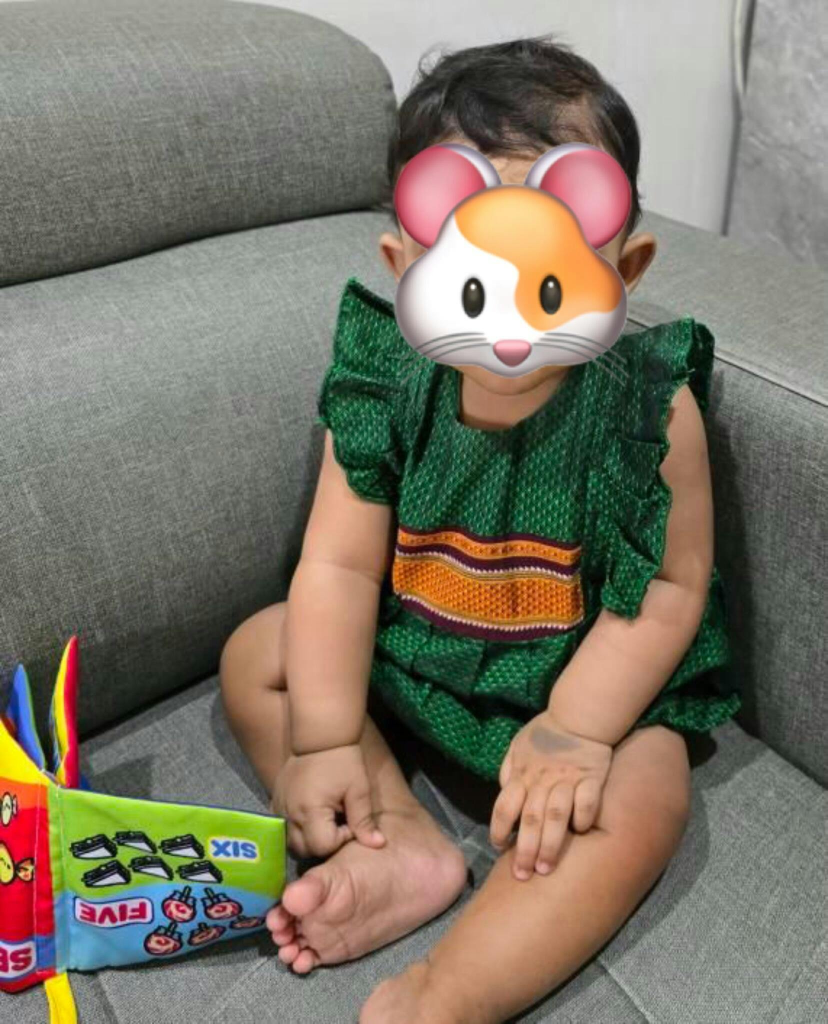 Green Ethnic Baby Romper with plain frills