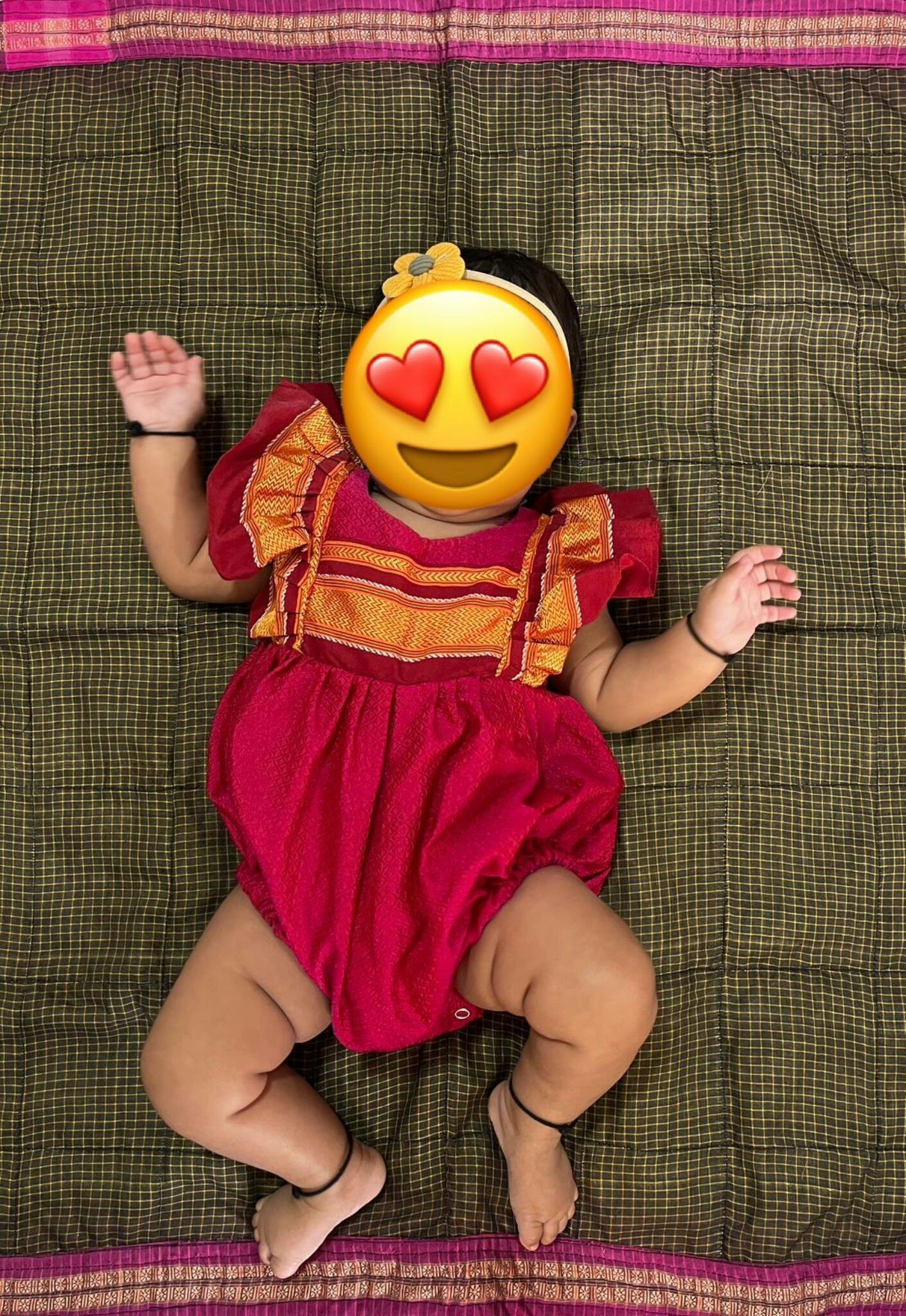 Magenta Pink Ethnic Baby Romper for Girls – Festive Silk Blend with Zari